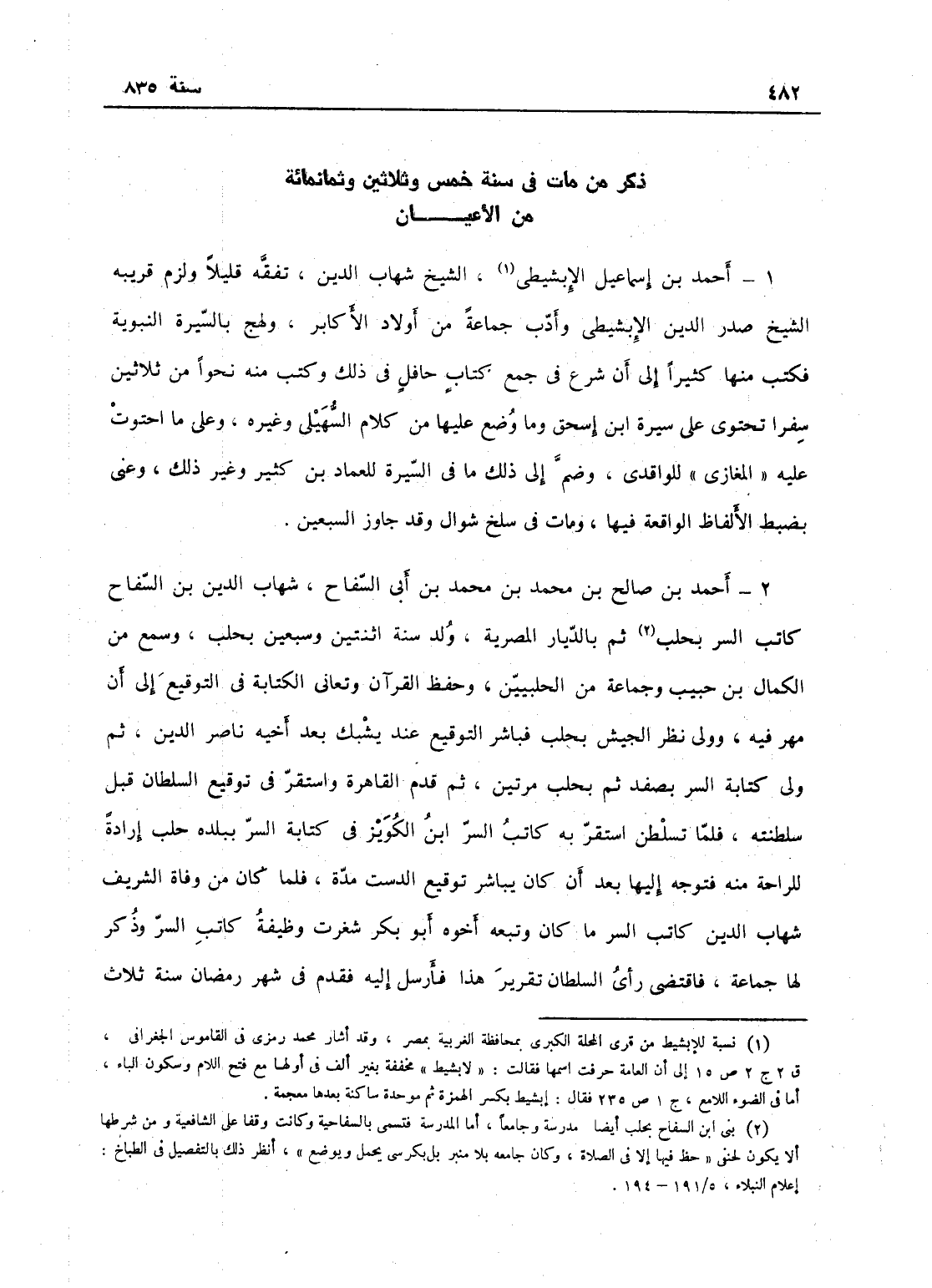 في سنة خمس وثلاثين وثمانمائة من الأعيان.