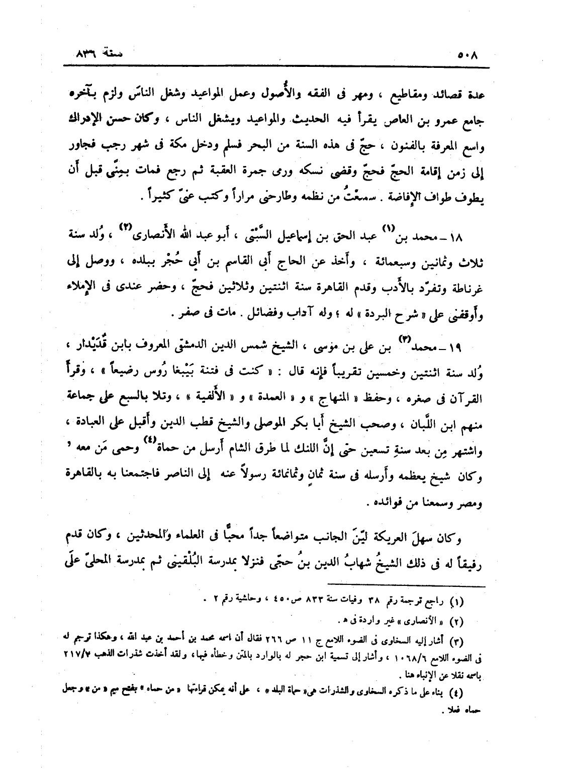 محمد بن عبد الحق بن إسماعيل، السبتي أبو عبد الله، ولد سنة 783، وأخذ عن الحاج أبي القاسم بن أبي حجة ببلده، ووصل إلى غرناطة فقرأ بالأدب، وقدم القاهرة سنة 32 فحج، وحضر عندي في الإملاء فزار وأوقفني على شرح البردة له، وله آداب وفضائل؛ مات في صفر.