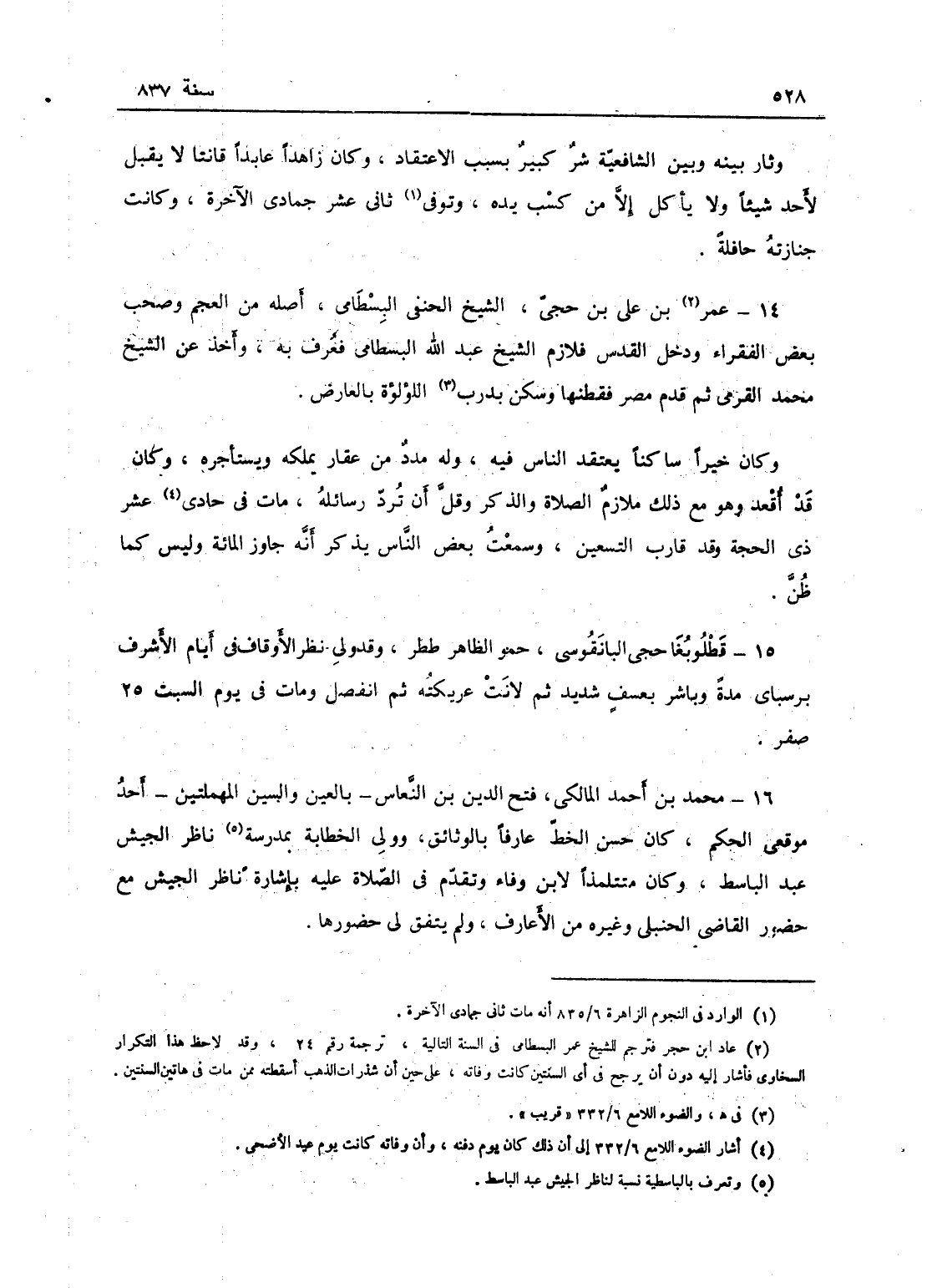 قطلو بغا حجى البانقوسي حمو الظاهر ططر، ولي نظر الأوقاف في أيام الأشرف مدة، وباشر بعنف شديد ثم لانت عريكته، ثم انفصل ومات في يوم السبت 25 صفر.