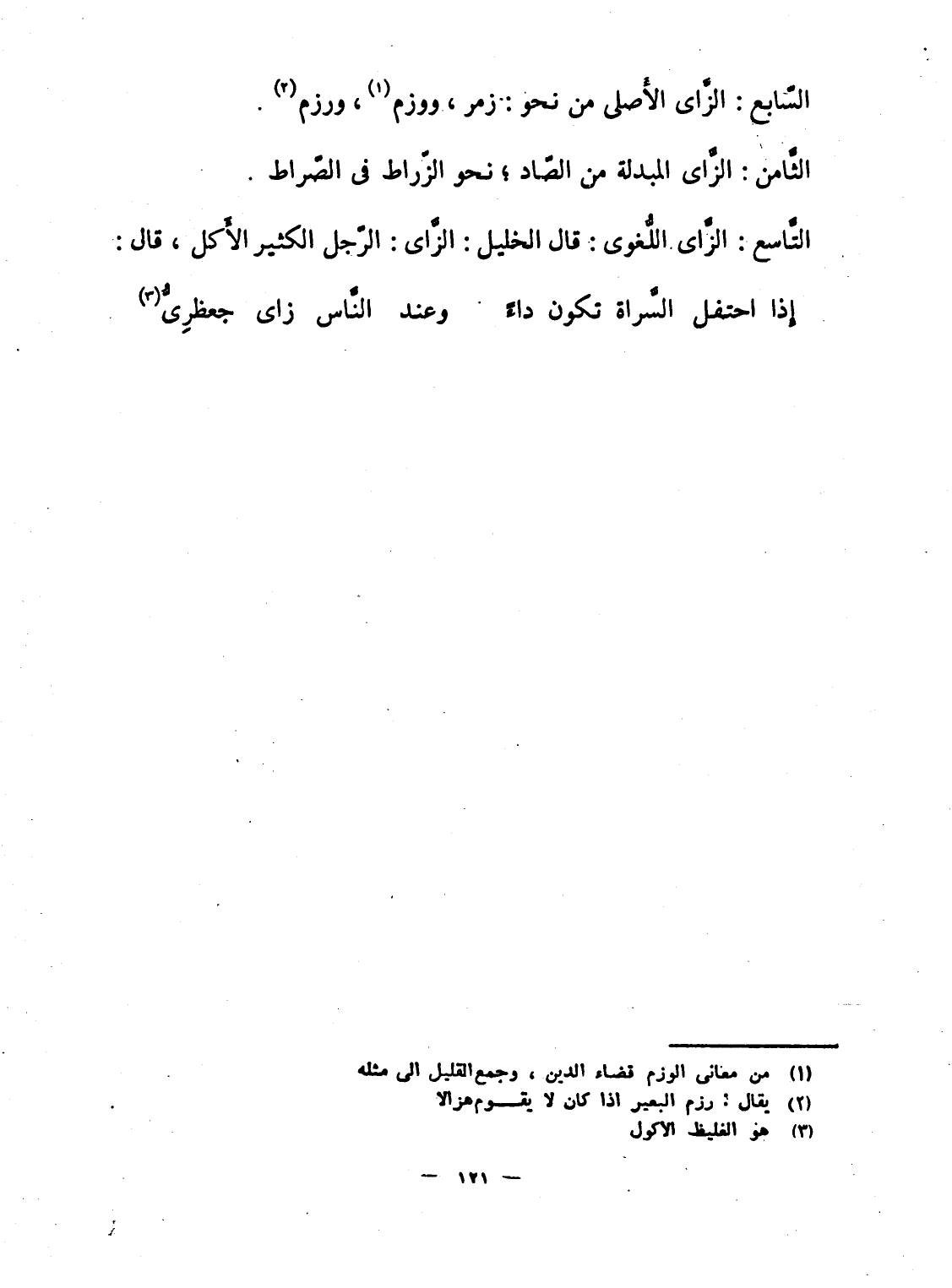 التَّاسع: الزَّاى اللُّغوى: قال الخليل: الزَّلمى: الرّجل الكثير الأَكل، قال: