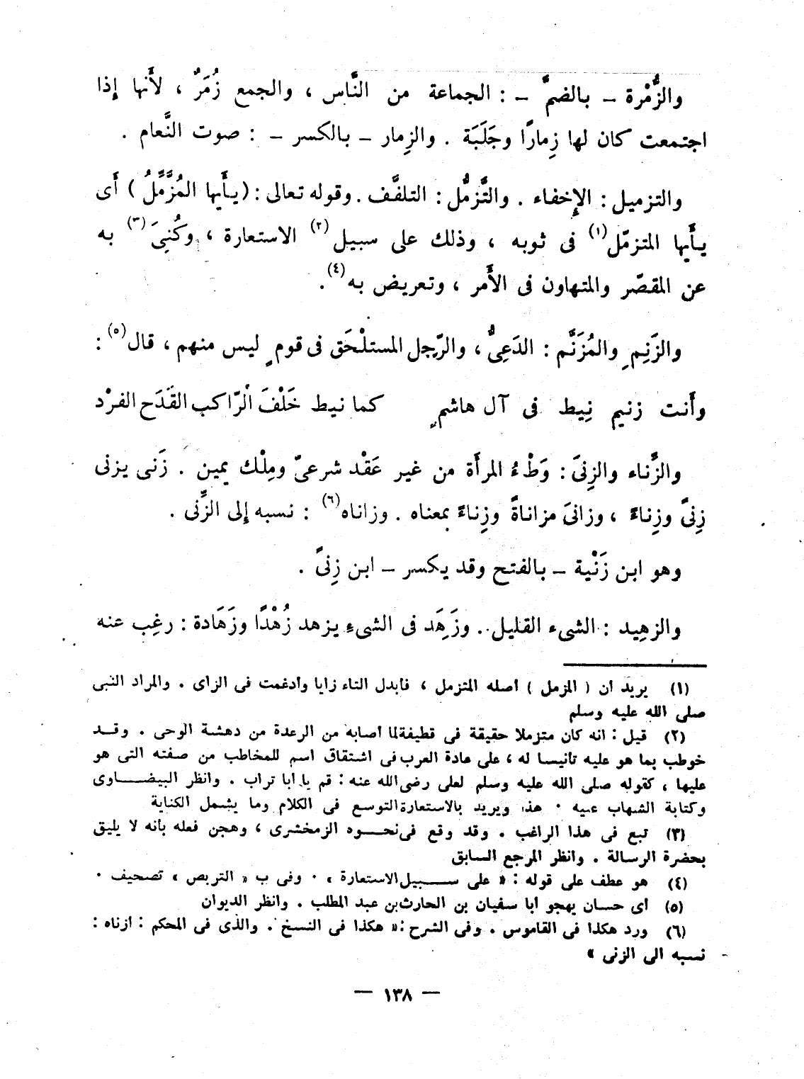 والزِّناء والزِنىَ: وَطْءُ المرأَة من غير عَقْد شرعىّ ومِلْك يمين. زَنى يزنى زِنىّ وزِناءً، وزانىّ مزاناةً وزِناءً بمعناه. وزاناه: نسبه إِلى الزِّنى.
