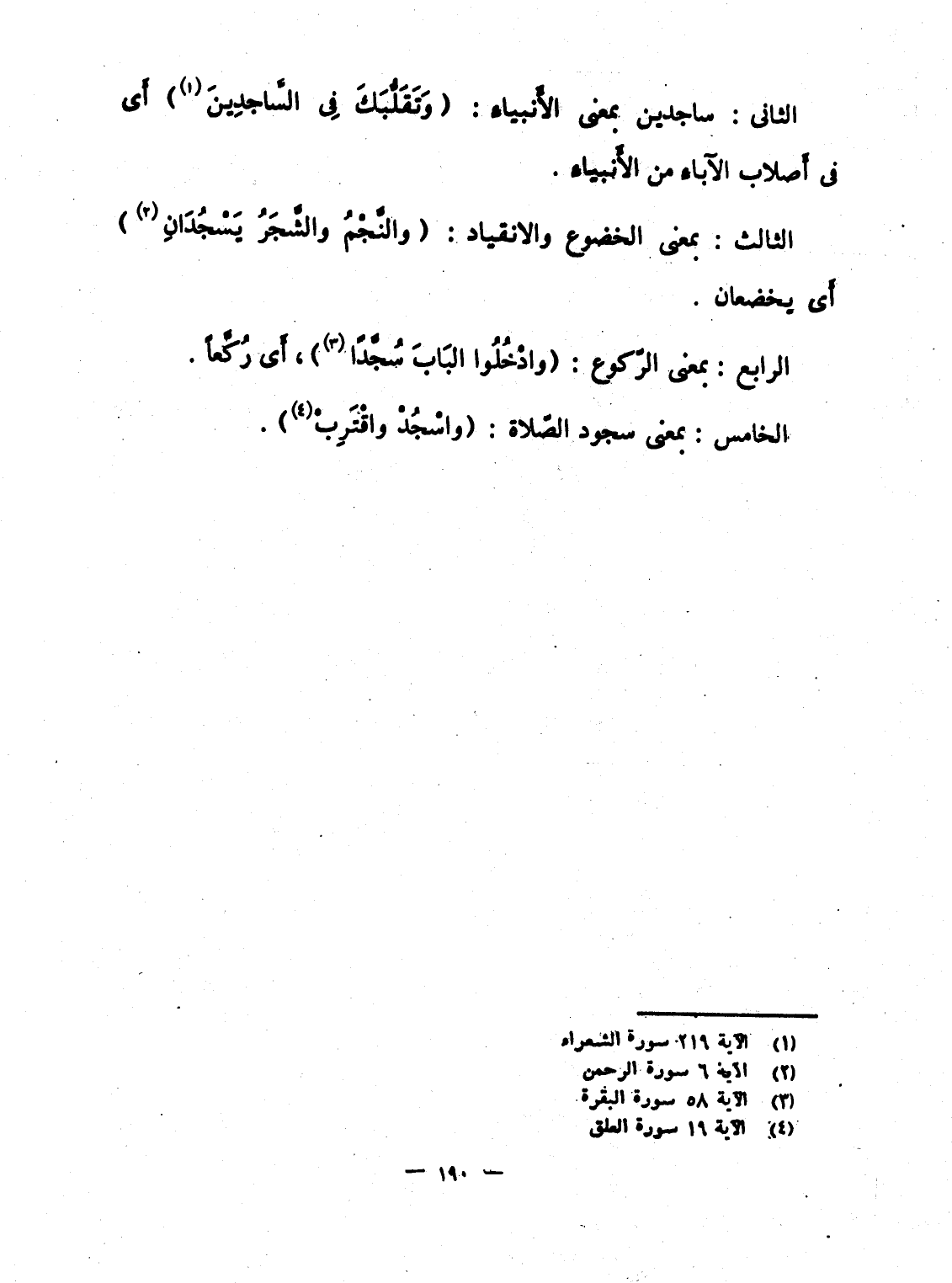 الرابع: بمعنى الرّكوع: {وادخلوا الباب سُجَّداً} ، أَى رُكَّعاً.