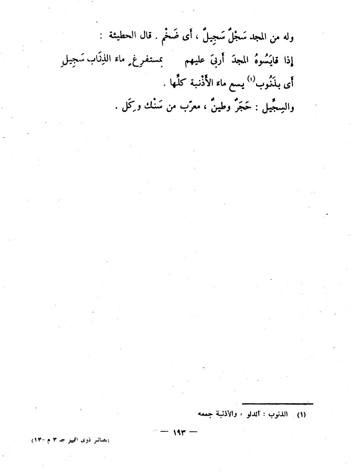 وله من المجد سَجْلٌ سَجِيلٌ، أَى ضَخْم. قال الحطيئة: