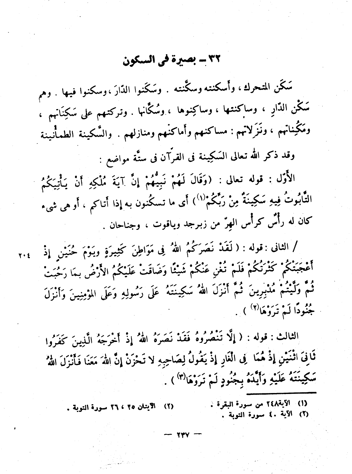/ الثاني: قوله: {لَقَدْ نَصَرَكُمُ الله فِي مَوَاطِنَ كَثِيرَةٍ وَيَوْمَ حُنَيْنٍ إِذْ أَعْجَبَتْكُمْ كَثْرَتُكُمْ فَلَمْ تُغْنِ عَنكُمْ شَيْئاً وَضَاقَتْ عَلَيْكُمُ الأرض بِمَا رَحُبَتْ ثُمَّ وَلَّيْتُم مُّدْبِرِينَ ثُمَّ أَنَزلَ الله سَكِينَتَهُ على رَسُولِهِ وَعَلَى المؤمنين وَأَنزَلَ جُنُوداً لَّمْ تَرَوْهَا} .