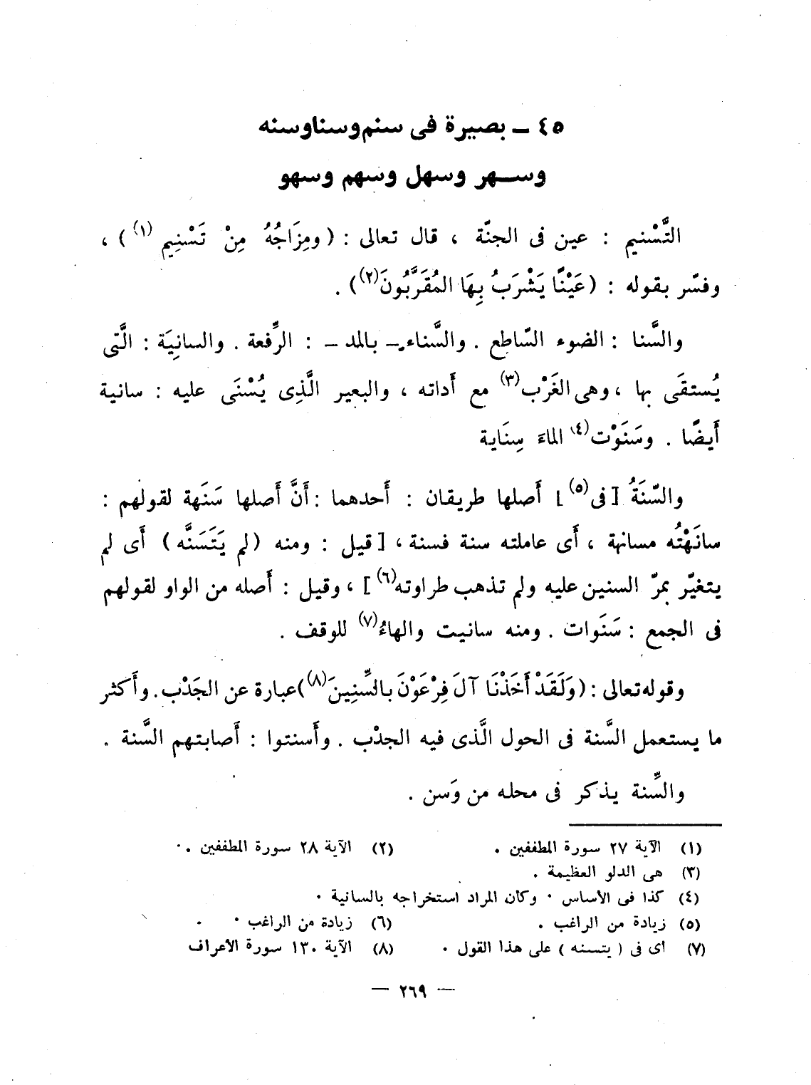 بصيرة فى سنم وسنا وسنه وسهر وسهل وسهم وسهو