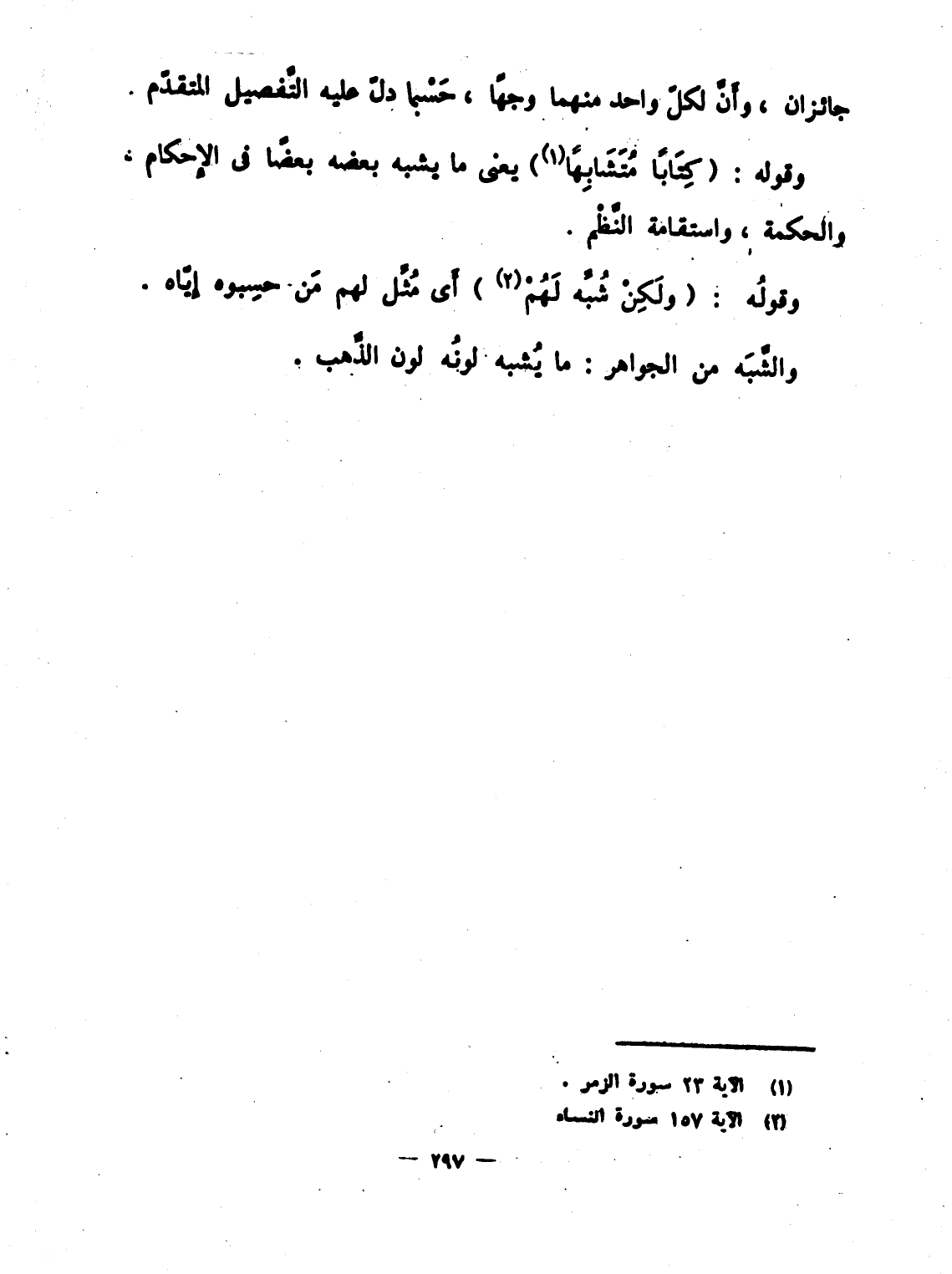 وقوله: {كِتَاباً مُّتَشَابِهاً} يعنى ما يشبه بعضه بعضًا فى الإِحكام والحكمة، واستقامة النَّظْم.