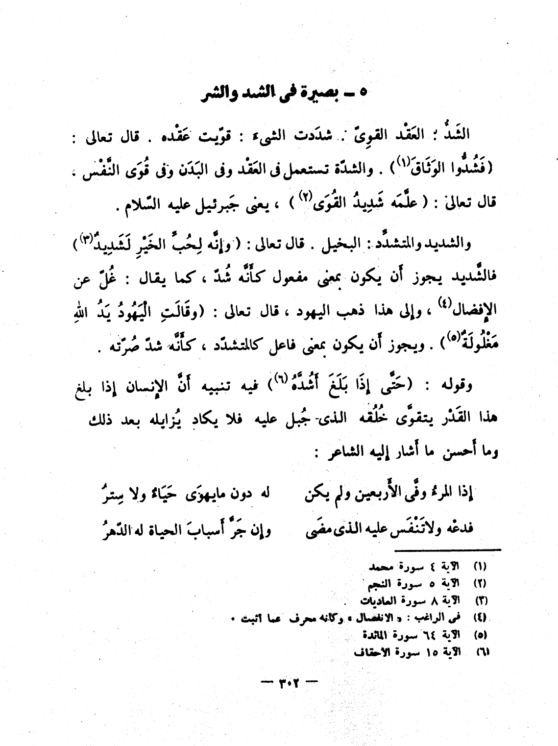 الشَدُّ: العَقْد القوِىّ. شدَدت الشىءَ: قوّيت عَقْده. قال تعالى: {فَشُدُّواْ الوثاق} . والشدّة تستعمل فى العَقْد وفى البَدَن وفى قُوَى النَّفْس، قال تعالى: {عَلَّمَهُ شَدِيدُ القوى} ، يعنى جَبرئيل عليه السّلام.