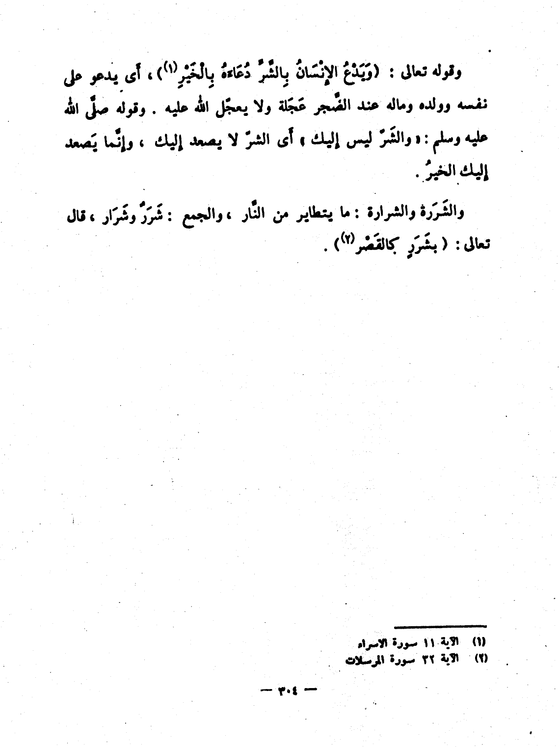 وقوله تعالى: {وَيَدْعُ الإنسان بالشر دُعَآءَهُ بالخير} ، أَى يدعو على نفسه وولده وماله عند الضَّجر عَجَلة ولا يعجّل الله عليه. وقوله صلَّى الله عليه وسلم: "والشَرّ ليس إِليك" أَى الشرّ لا يصعد إِليك، وإِنَّما يَصعد إِليك الخيرُ.