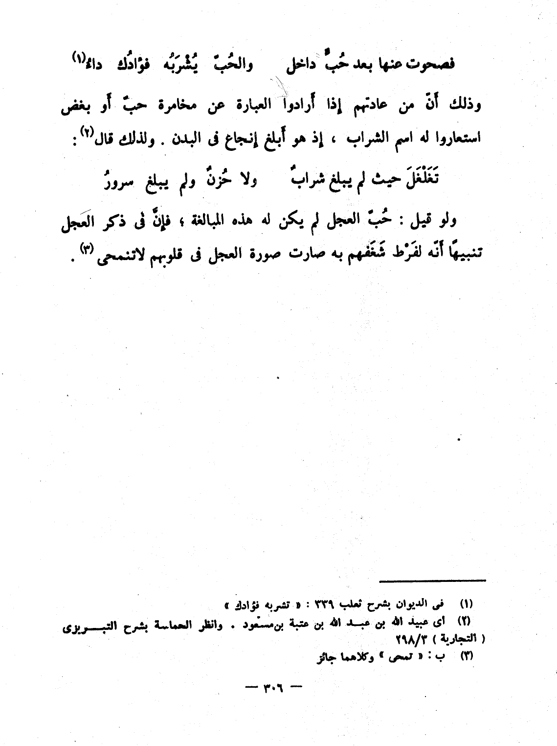 وذلك أَنّ من عادتهم إِذا أَرادوا العبارة عن مخامرة حبّ أَو بغض استعاروا له اسم الشراب، إِذ هو أَبلغ إِنجاع فى البدن. ولذلك قال: