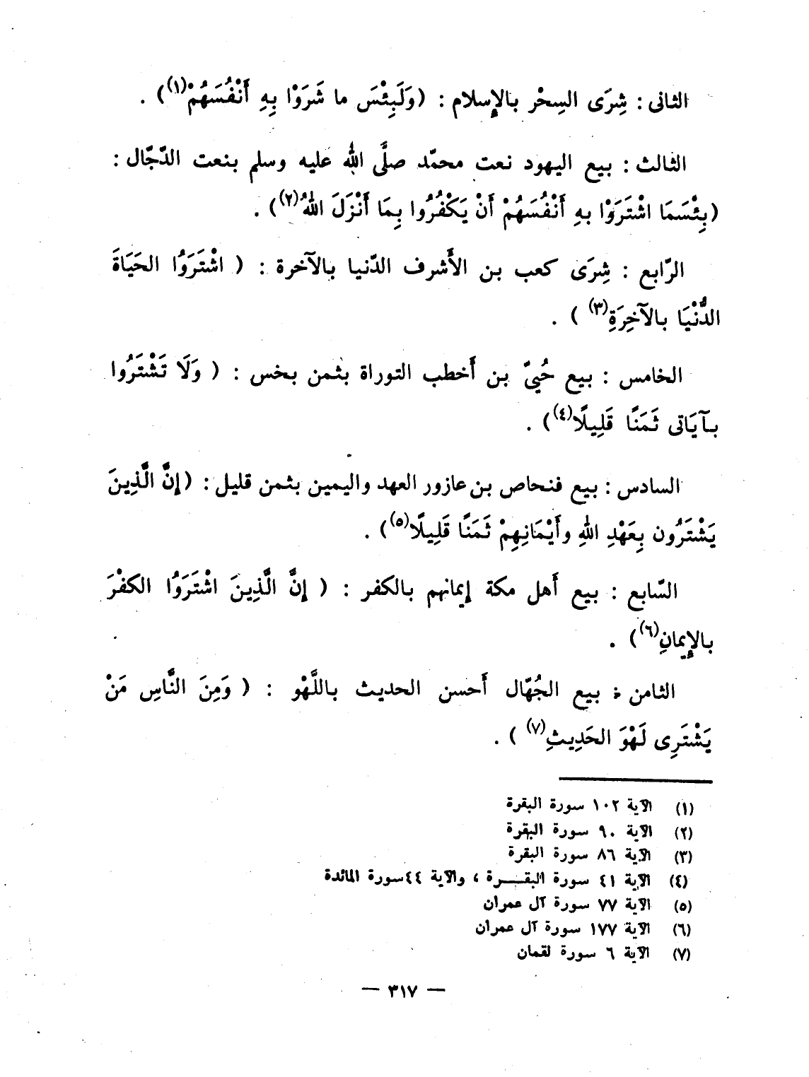 الرّابع: شِرَى كعب بن الأَشرف الدّنيا بالآخرة: {اشتروا الحياة الدنيا بالآخرة} .