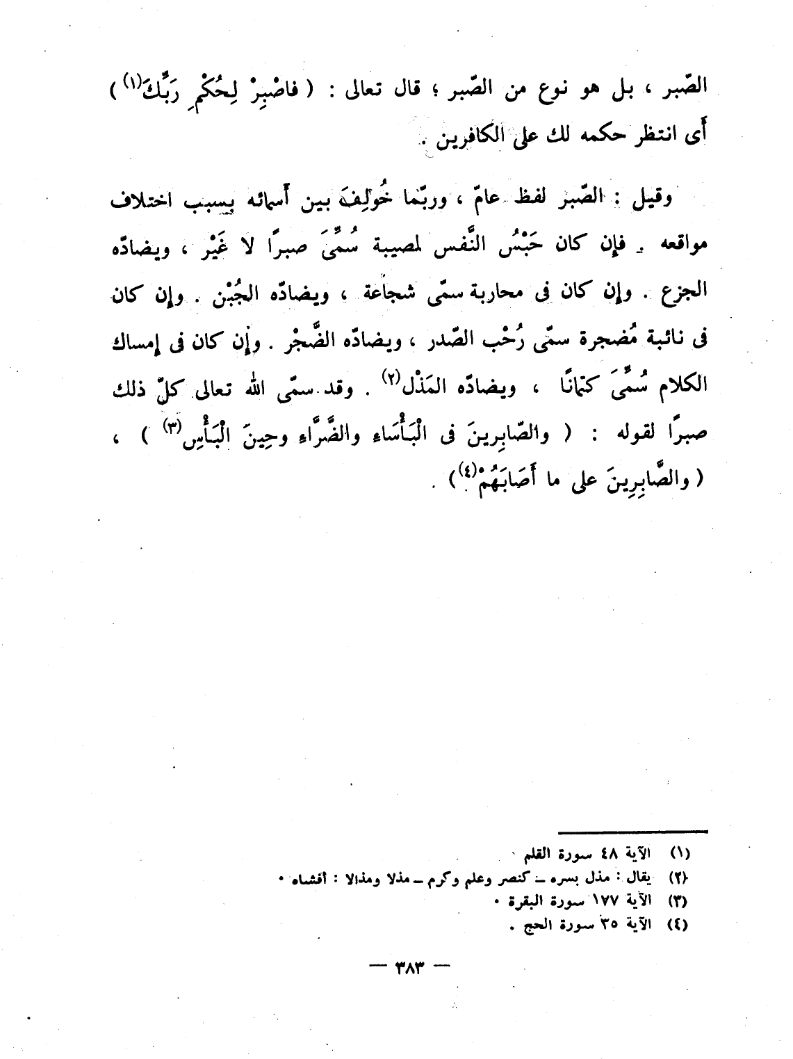 الصّبر، بل هو نوع من الصّبر؛ قال تعالى: {فاصبر لِحُكْمِ رَبِّكَ} أَى انتظر حكمه لك على الكافرين.