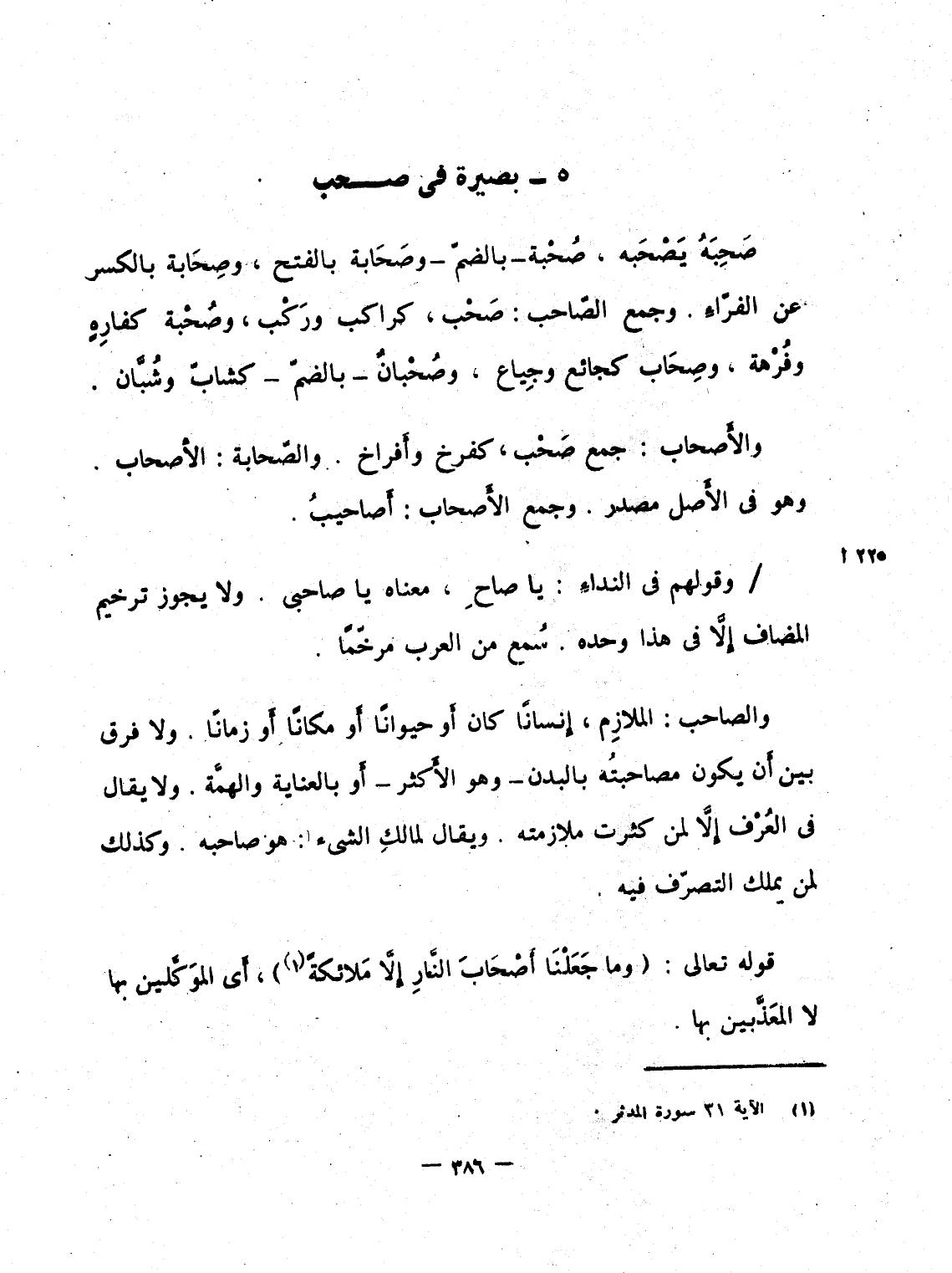 /وقولهم فى النداءِ: يا صاحِ، معناه يا صاحبى. ولا يجوز ترخيم المضاف إِلاَّ فى هذا وحده. سُمع من العرب مرخّمًا.