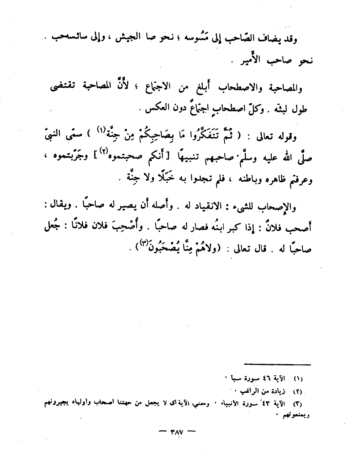 وقد يضاف الصّاحب إِلى مَسُوسه؛ نحو ص الجيش، وإِلى سائسه حب: نحو صاحب الأَمير.