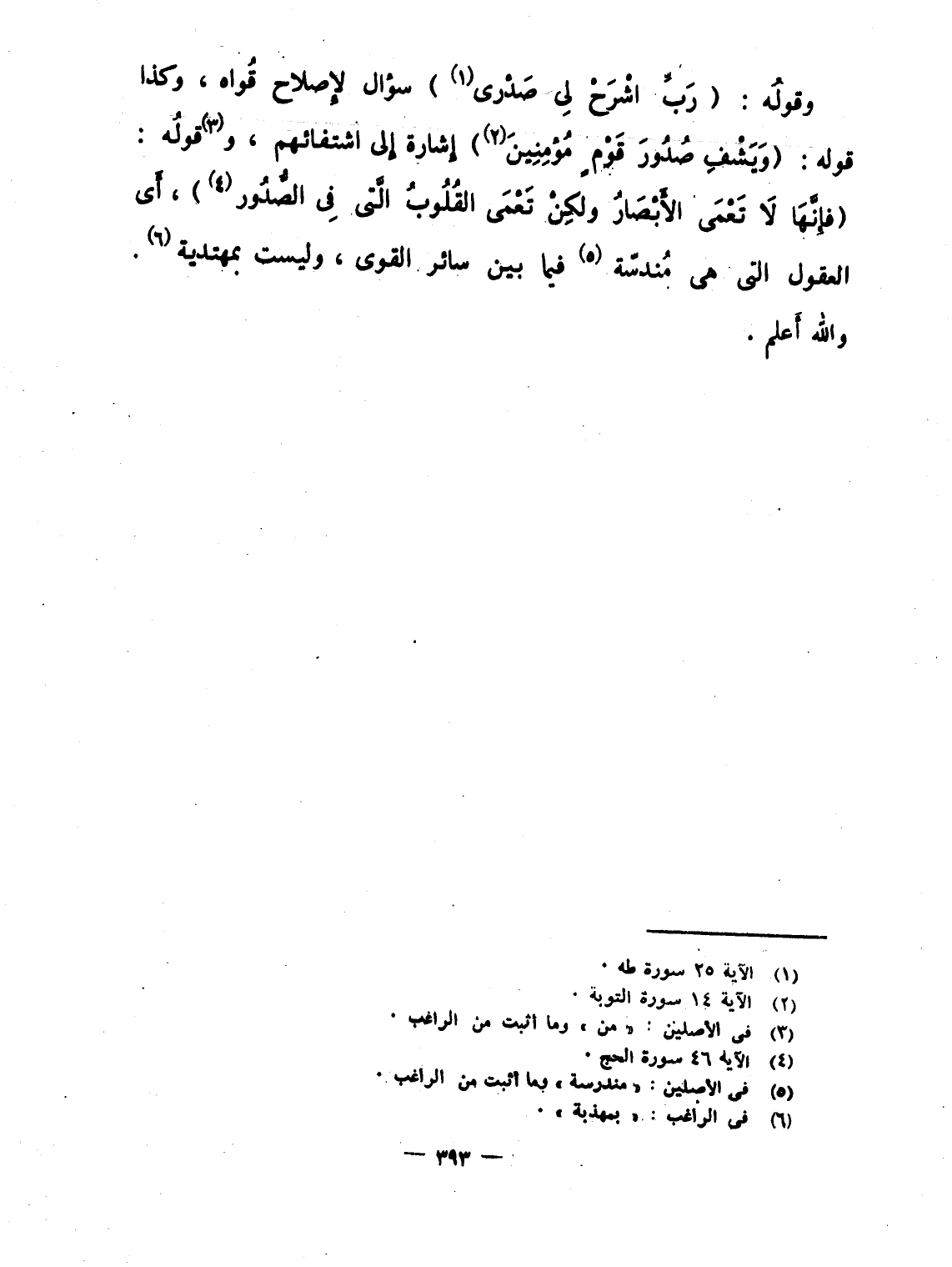 وقولُه: {رَبِّ اشرح لِي صَدْرِي} سؤال لإِصلاح قُواه، وكذا قوله: {وَيَشْفِ صُدُورَ قَوْمٍ مُّؤْمِنِينَ} إِشارة إِلى اشتفائهم، وقولُه: {فَإِنَّهَا لاَ تَعْمَى الأبصار ولاكن تعمى القلوب التي فِي الصدور} ، أَى العقول التى هى مُندسّة فيما بين سائر القوى، وليست بمهتدية. والله أَعلم.