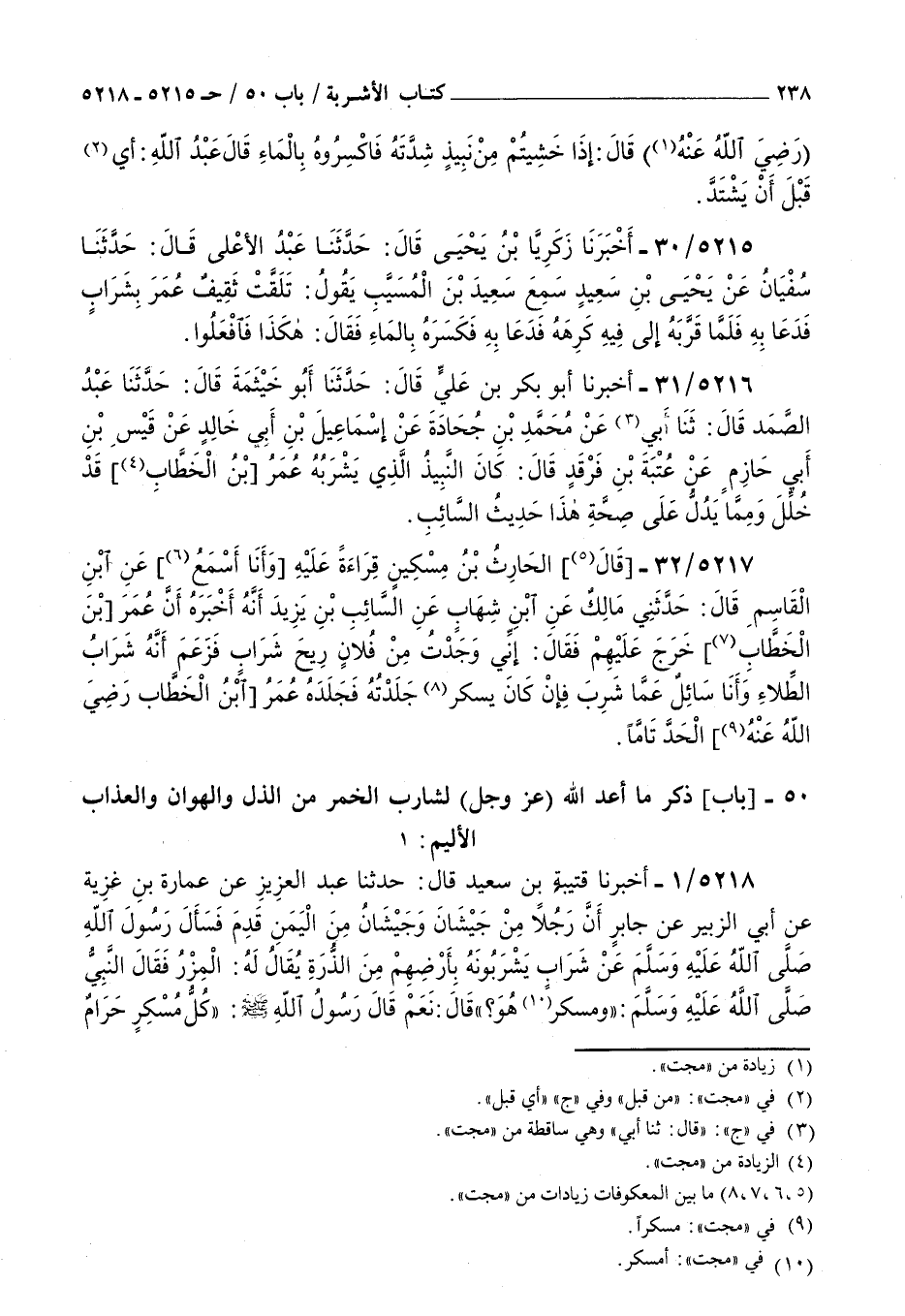 5216 - أخبرنا أبو بكر بن علي قال حدثنا أبو خيثمة قال حدثنا عبد الصمد قال ثنا أبي عن محمد بن جحادة عن إسماعيل بن أبي خالد عن قيس بن أبي حازم عن عتبة بن فرقد قال : كان النبيذ الذي يشربه عمر بن الخطاب قد خلل ومما يدل على صحة هذا حديث السائب