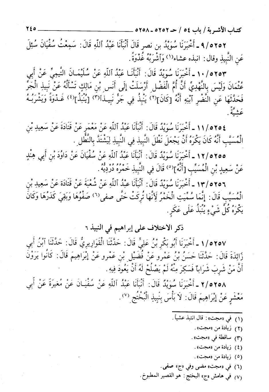 5258 - أخبرنا سويد قال أنبأنا عبد الله عن سفيان عن مغيرة عن أبي معشر عن إبراهيم قال : لا بأس بنبيذ البختج