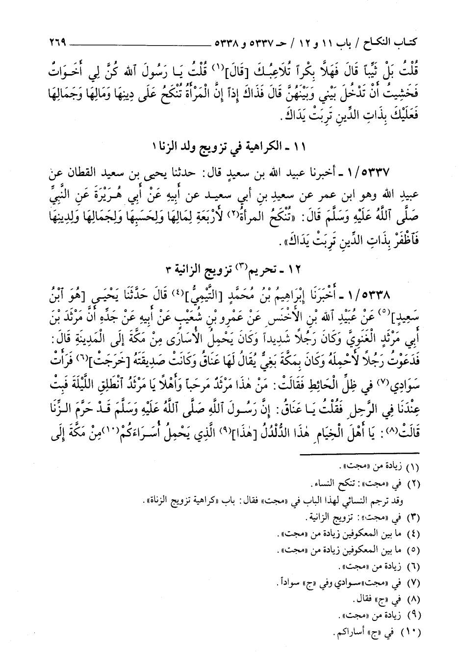 5337 - أخبرنا عبيد الله بن سعيد قال حدثنا يحيى بن سعيد القطان عن عبيد الله وهو بن عمر عن سعيد بن أبي سعيد عن أبيه عن أبي هريرة عن النبي صلى الله عليه و سلم قال : تنكح المرأة لأربعة لمالها ولحسبها ولجمالها ولدينها فاظفر بذات الدين تربت يداك