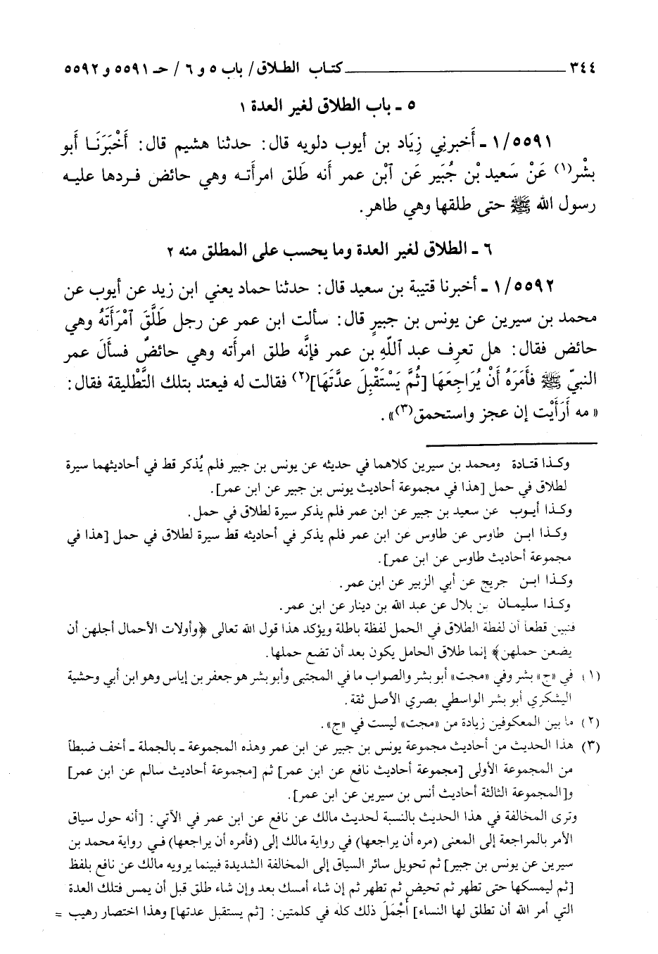 5591 - أخبرني زياد بن أيوب دلويه قال حدثنا هشيم قال أخبرنا أبو بشر عن سعيد بن جبير عن بن عمر أنه : طلق امرأته وهي حائض فردها عليه رسول الله صلى الله عليه و سلم حتى طلقها وهي طاهر