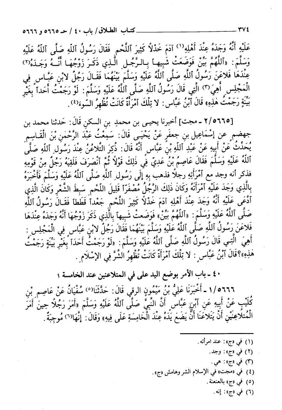 (40 باب الأمر بوضع اليد على في المتلاعنين عند الخامسة)