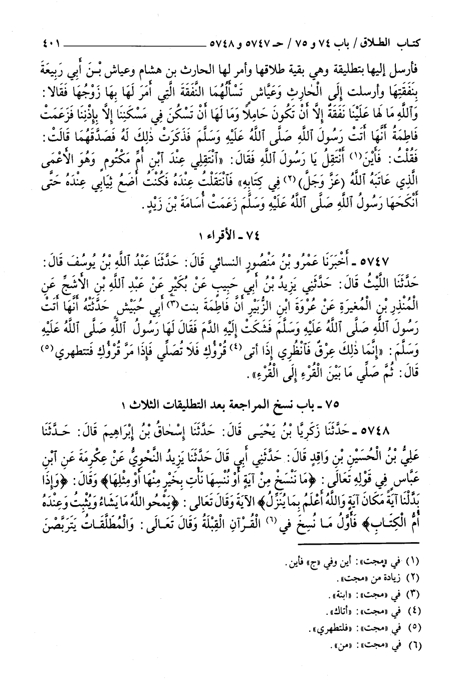 ( 75 باب نسخ المراجعة بعد التطليقات الثلاث )