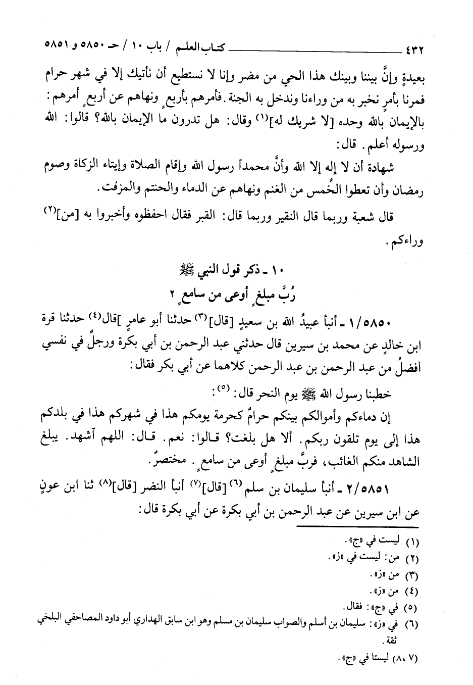 ( 10 ذكر قول النبي صلى الله عليه و سلم رب مبلغ أوعى من سامع )