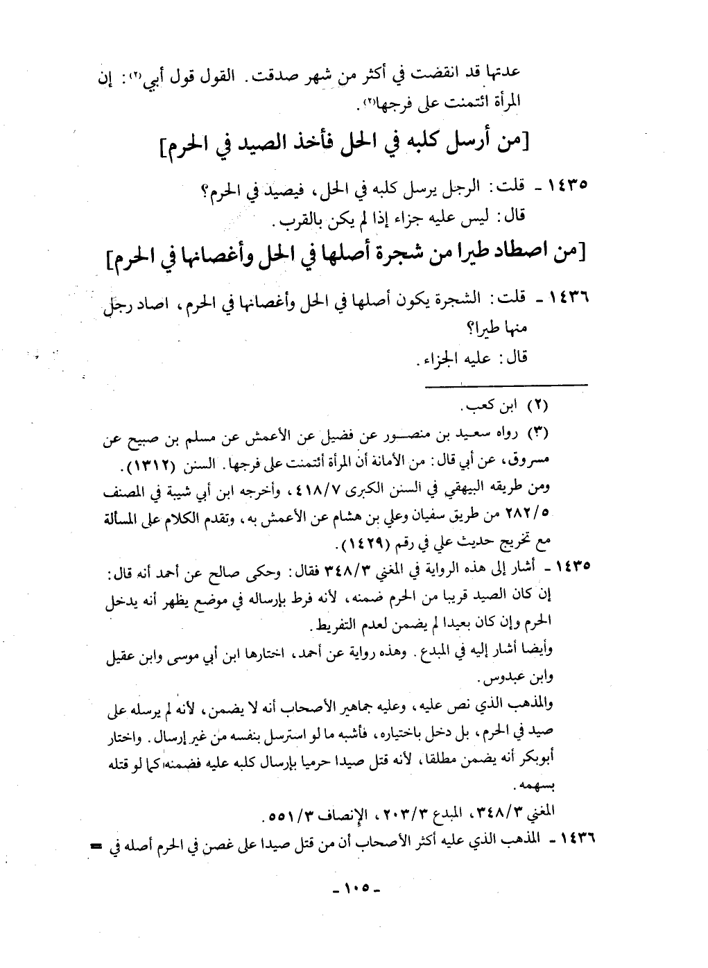 ١٤٣٥ - قلت الرجل يُرْسل كَلْبه فِي الْحل فيصيد فِي الْحرم