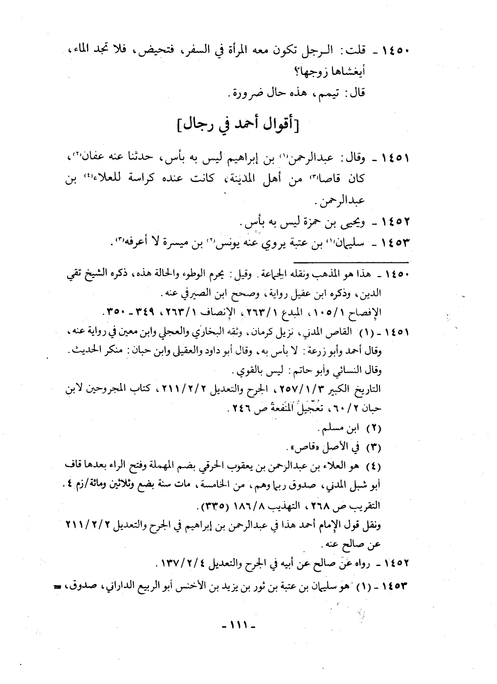 ١٤٥٠ - قلت الرجل تكون مَعَه الْمَرْأَة فِي السّفر فتحيض فَلَا تَجِد المَاء أيغشاها زَوجهَا