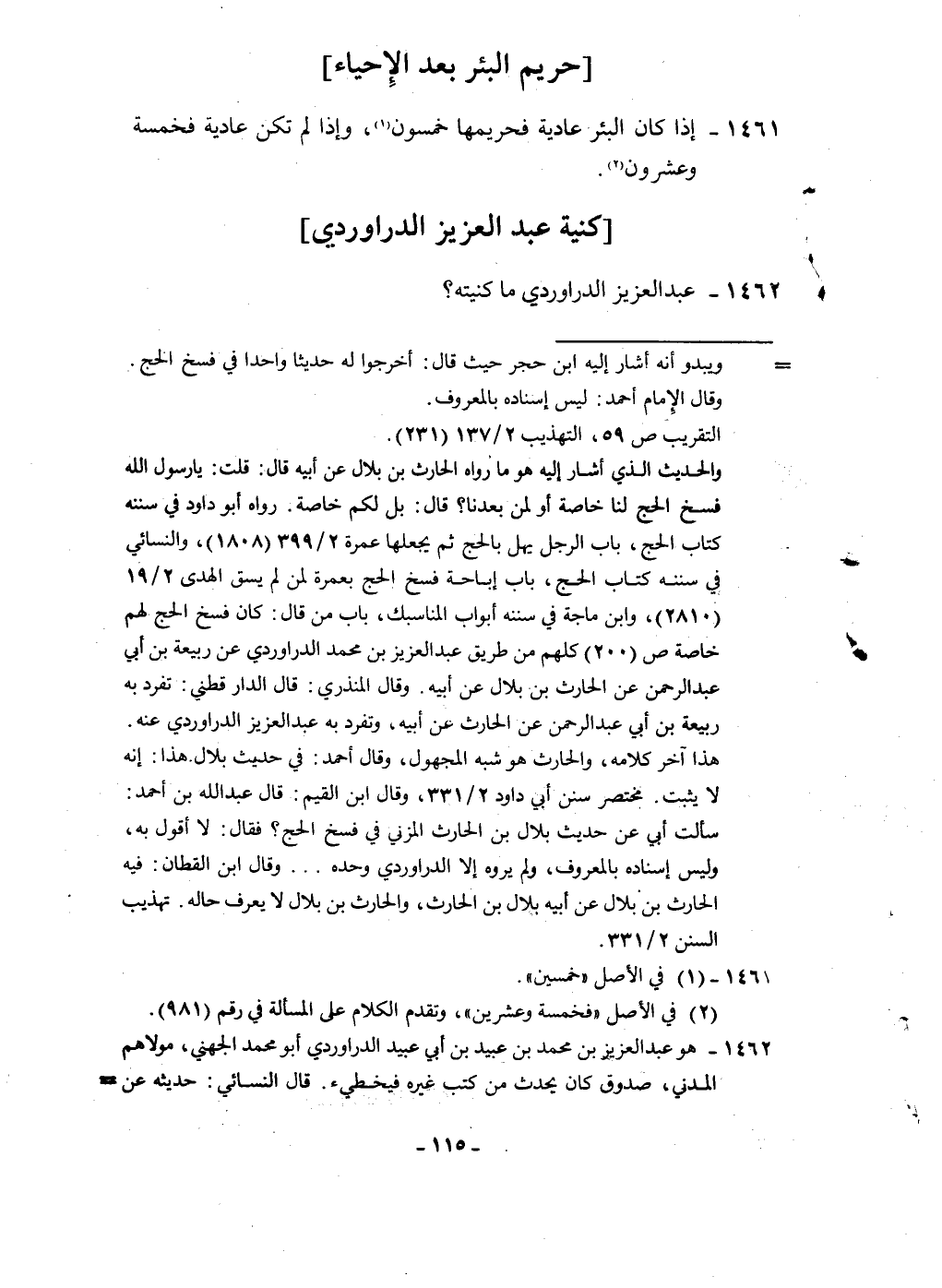 ١٤٦١ - إِذا لم كَانَ الْبِئْر عَادِية فحريمها خَمْسُونَ وَإِذا لم تكن عَادِية فخمسة وَعِشْرُونَ