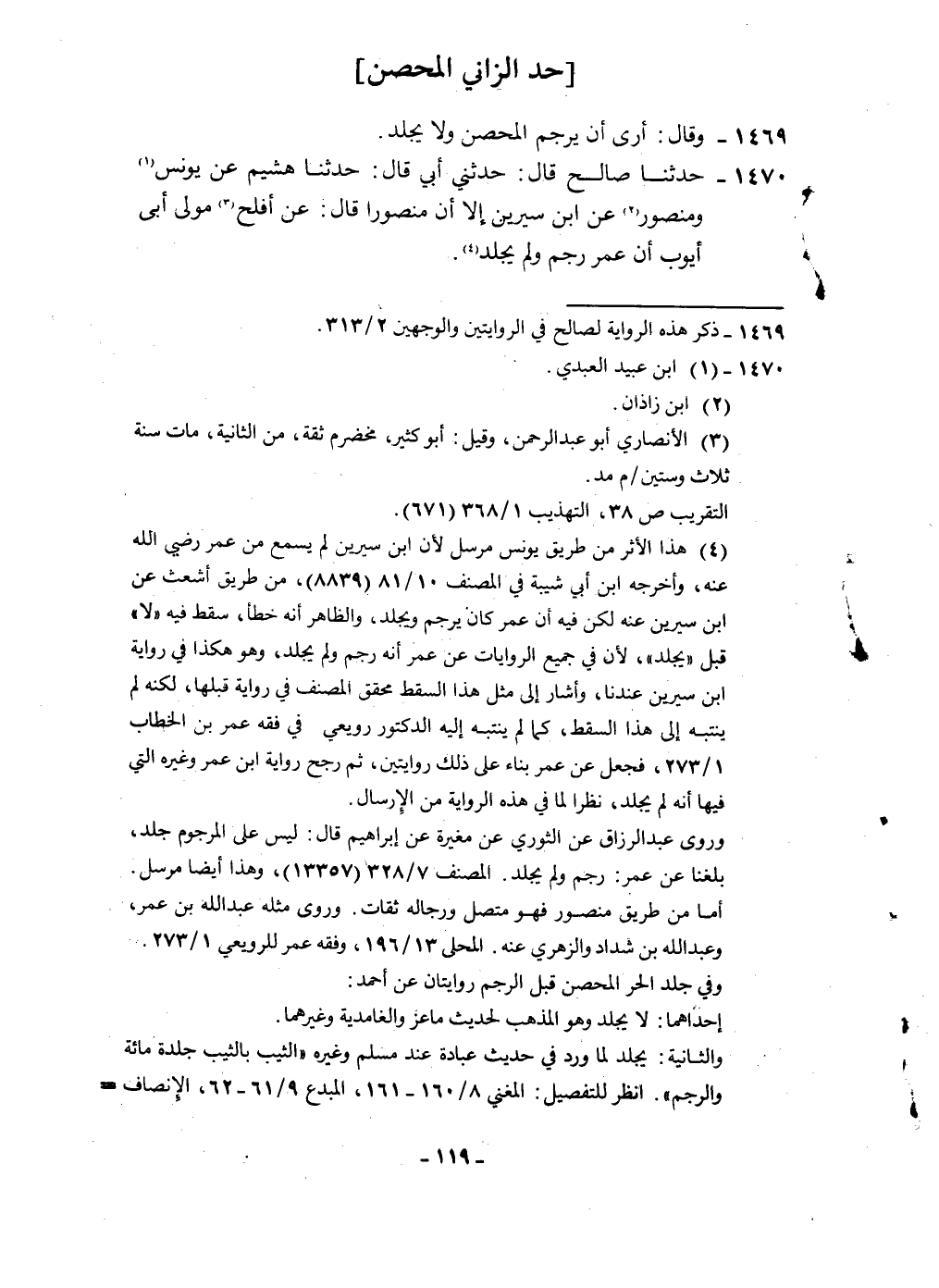 ١٤٦٩ - وَقَالَ أرى أَن يرْجم الْمُحصن وَلَا يجلد