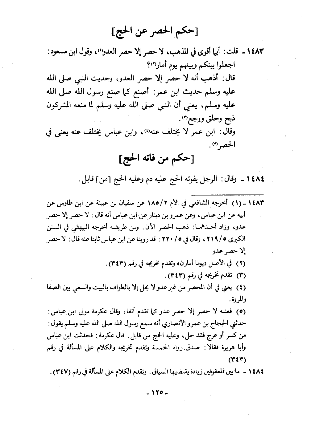 ١٤٨٣ - قلت أَيّمَا أقوى فِي الْمَذْهَب لَا حصر إِلَّا حصر الْعَدو وَقَول ابْن مَسْعُود اجعلوا بَيْنكُم وَبينهمْ يَوْم أمار