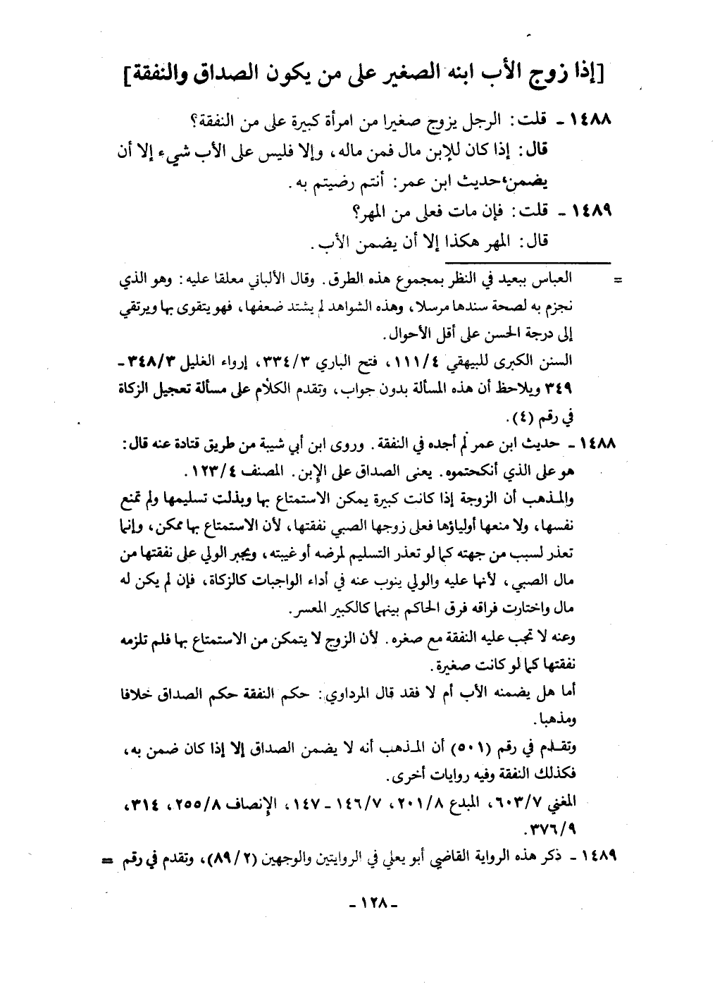 ١٤٨٨ - قلت الرجل يُزَوّج صَغِيرا من امْرَأَة كَبِيرَة على من النَّفَقَة