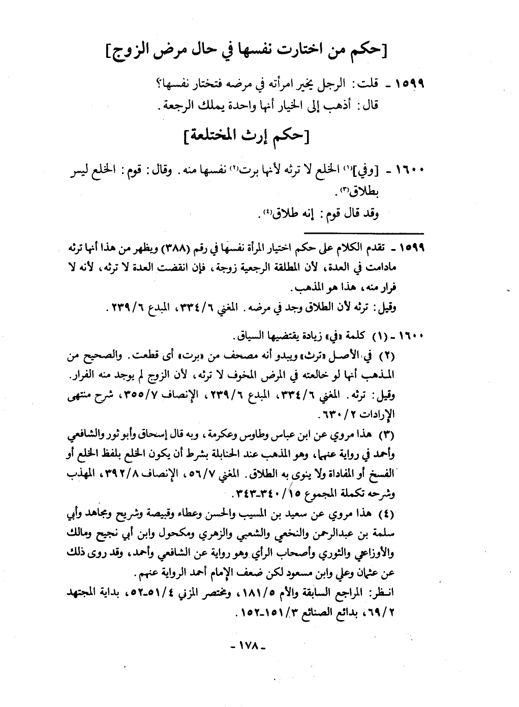 ١٦٠٠ - وَفِي الْخلْع لَا تَرثه لِأَنَّهَا برت نَفسهَا مِنْهُ وَقَالَ قوم الْخلْع لَيْسَ بِطَلَاق