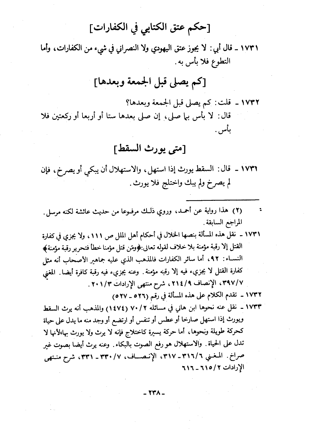 ١٧٣١ - قَالَ أبي لَا يجوز عتق الْيَهُودِيّ وَلَا النَّصْرَانِي فِي شَيْء من الْكَفَّارَات وَأما التَّطَوُّع فَلَا باس بِهِ