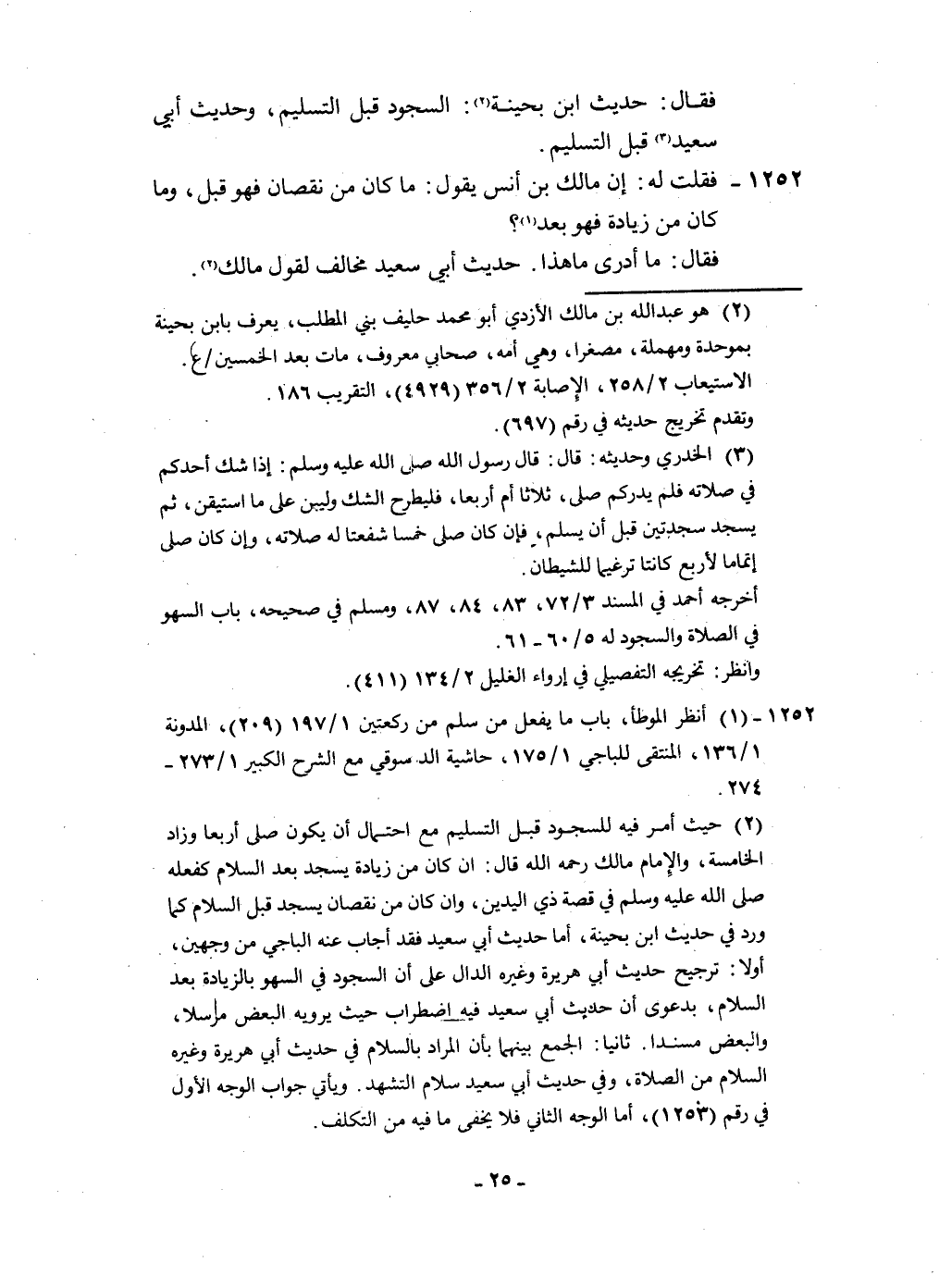 ١٢٥٢ - فَقلت لَهُ إِن مَالك بن أنس يَقُول مَا كَانَ من نُقْصَان فَهُوَ قبل وَمَا كَانَ من زِيَادَة فَهُوَ بعد