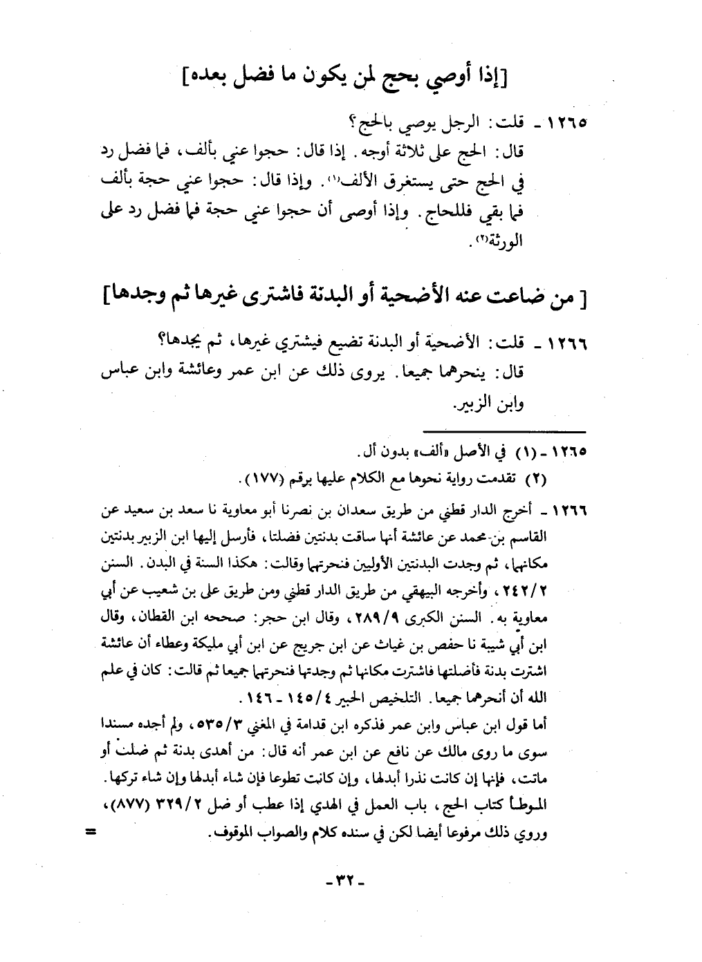 ١٢٦٦ - قلت الْأُضْحِية أَو الْبَدنَة تضيع فيشتري غَيرهَا ثمَّ يجدهَا