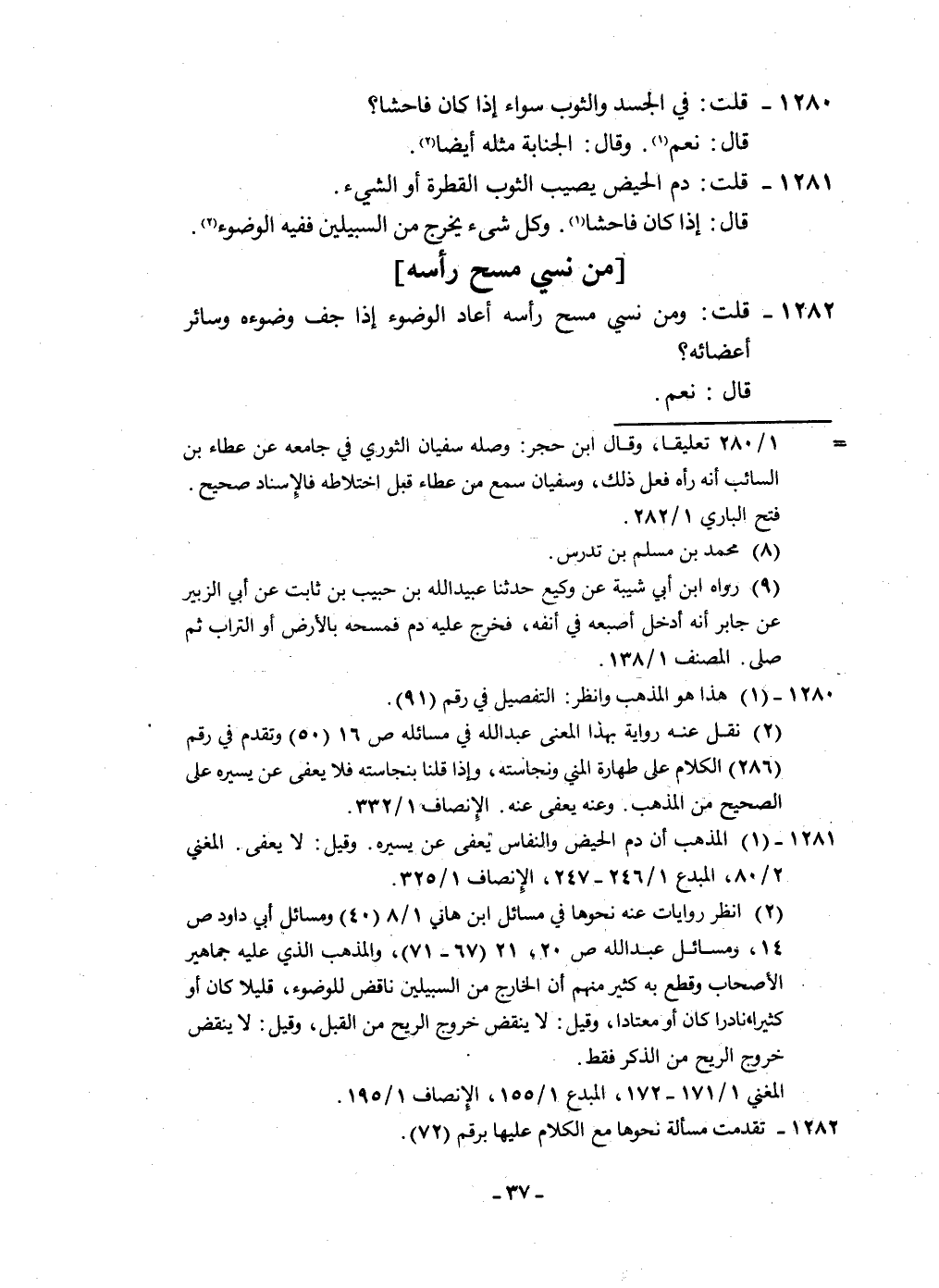 ١٢٨٢ - قلت وَمن نسي مسح رَأسه أعَاد الْوضُوء إِذا جف وضوءه وَسَائِر أَعْضَائِهِ