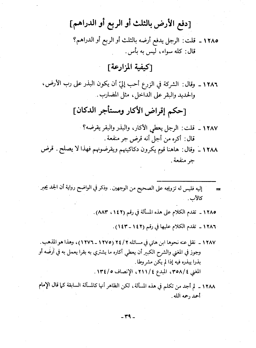 ١٢٨٧ - قلت الرجل يُعْطي الأكار وَالْبذْر وَالْبَقر يقْرضهُ
