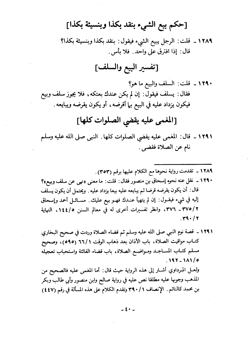 ١٢٩٠ - قلت السّلف وَالْبيع مَا هُوَ