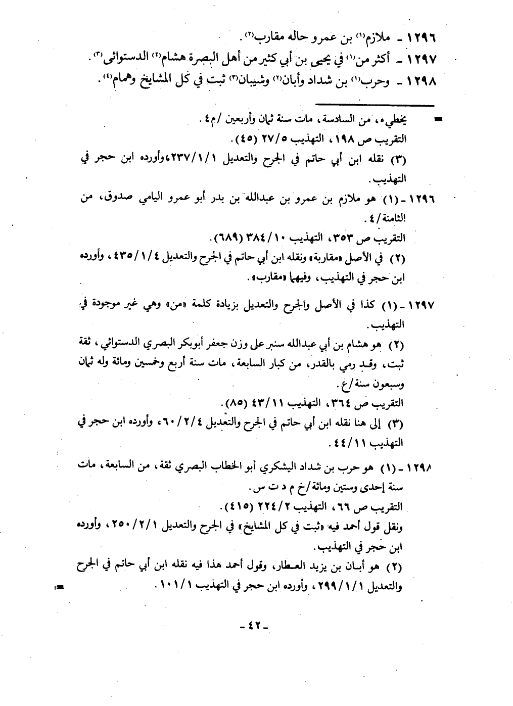 ١٢٩٨ - وَحرب بن شَدَّاد وَأَبَان وشيبان ثَبت فِي كل الْمَشَايِخ وَهَمَّام