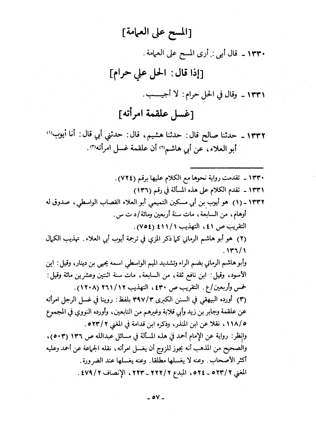 ١٣٣٢ - حَدثنَا صَالح قَالَ حَدثنَا هشيم قَالَ حَدثنِي أبي قَالَ أَنا أَيُّوب أَبُو الْعَلَاء عَن أبي هَاشم أَن عَلْقَمَة غسل امْرَأَته