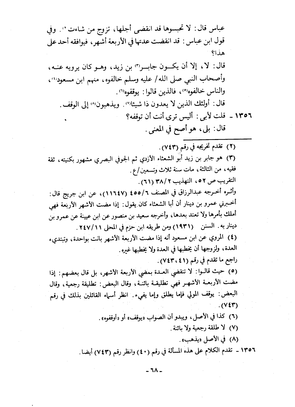 قَالَ لَا إِلَّا أَن يكون جَابر بن زيد وَهُوَ كَانَ يرويهِ عَنهُ وَأَصْحَاب النَّبِي صلى الله عَلَيْهِ وَسلم خالفوه مِنْهُم ابْن مَسْعُود وَالنَّاس خالفوه فَالَّذِينَ قَالُوا يوقفوه