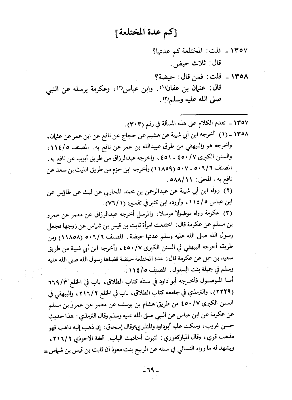 ١٣٥٨ - قلت فَمن قَالَ حَيْضَة