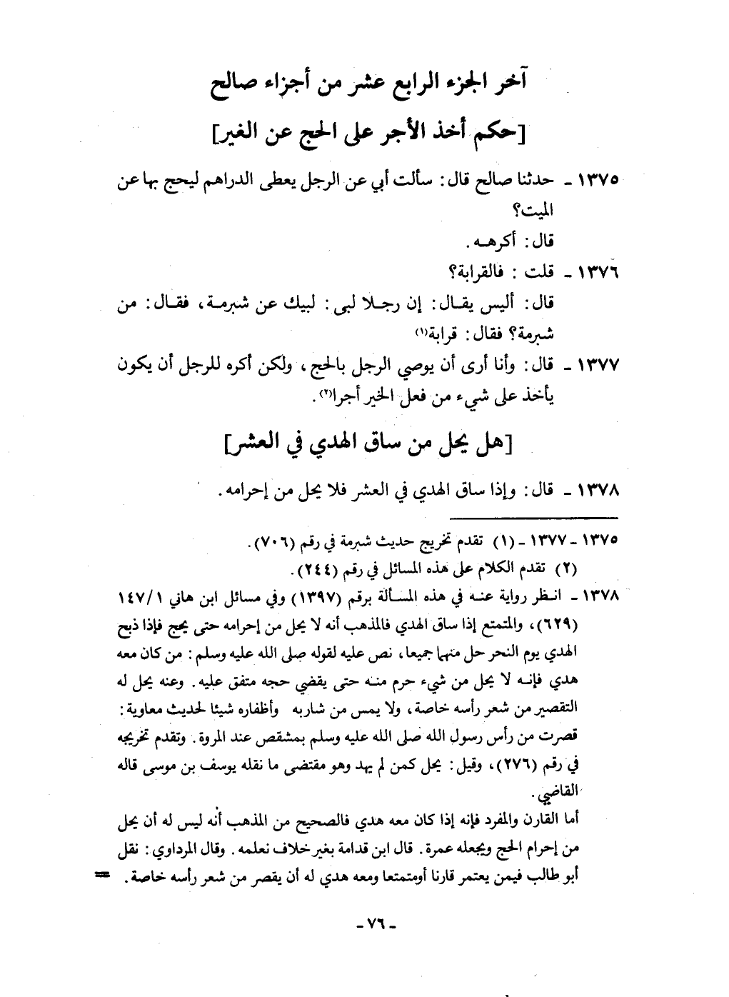 ١٣٧٧ - قَالَ وَأَنا أرى أَن يُوصي الرجل بِالْحَجِّ وَلَكِن أكره للرجل أَن يكون يَأْخُذ على شَيْء من فعل الْخَيْر أجرا