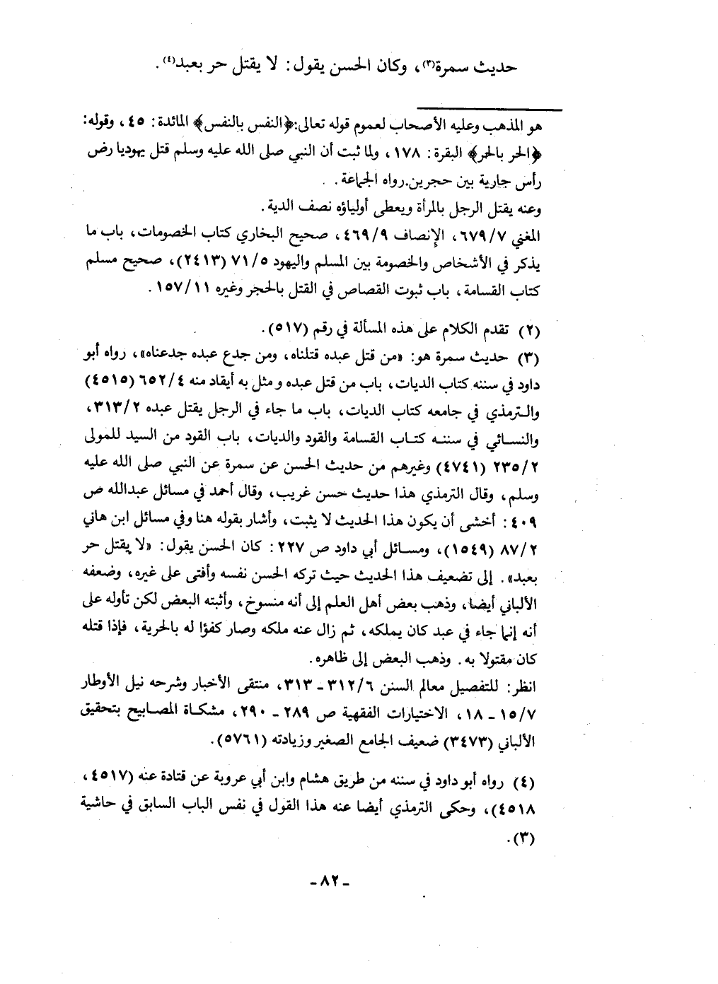 حَدِيث سَمُرَة وَكَانَ الْحسن يَقُول لَا يقتل حر بِعَبْد