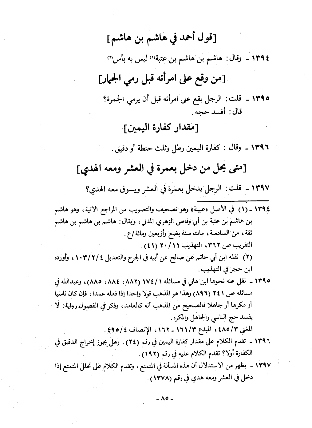 قَول أَحْمد فِي هَاشم بن هَاشم