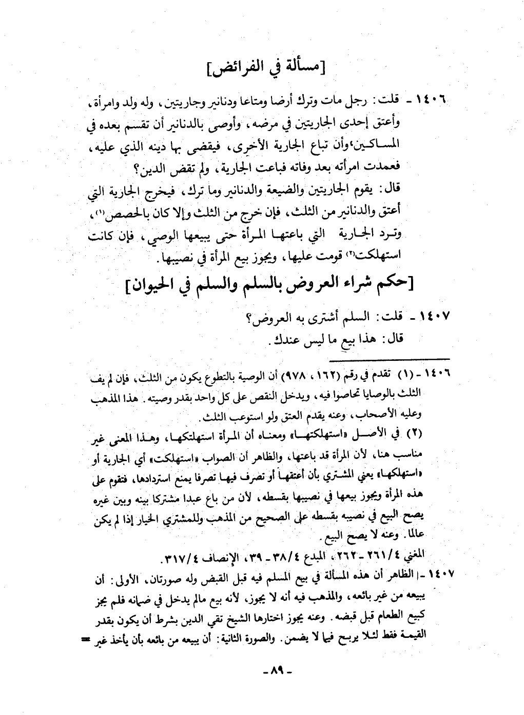 ١٤٠٧ - قلت السّلم أشترى بِهِ الْعرُوض