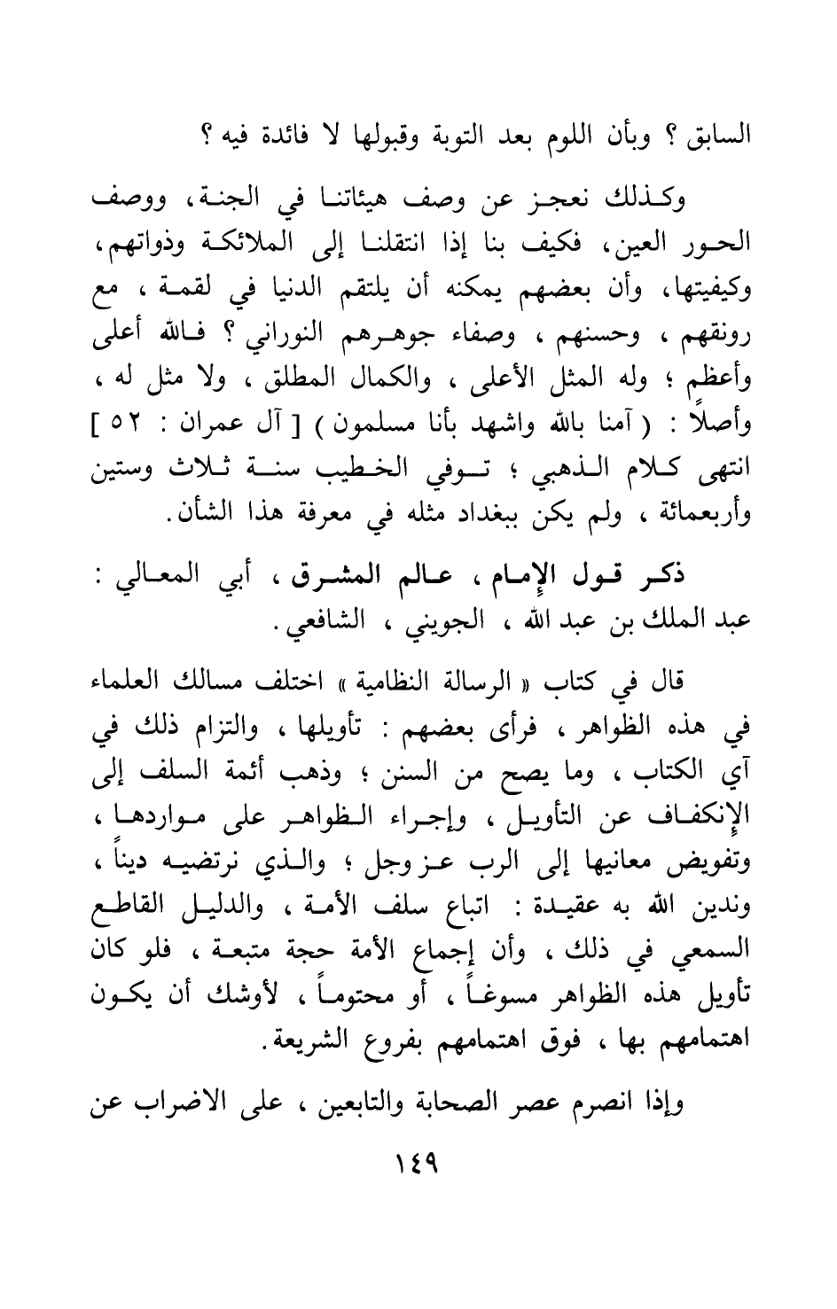 ذكر قول الإمام عالم المشرق أبي المعالي عبد الملك بن عبد الله الجويني الشافعي.