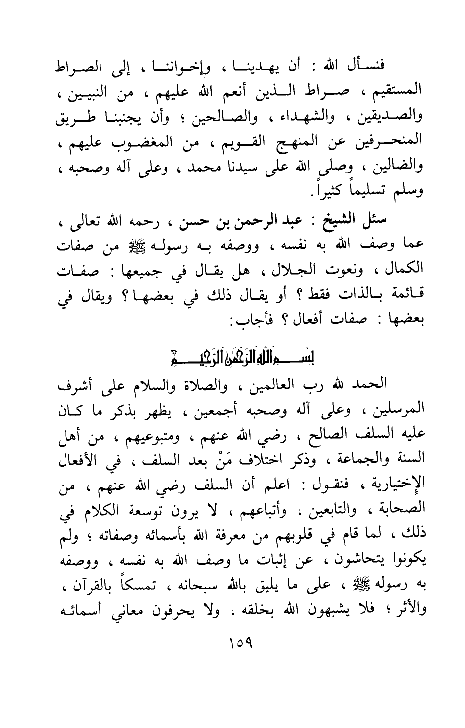 [جواب الشيخ عبد الرحمن بن حسن في الصفات]