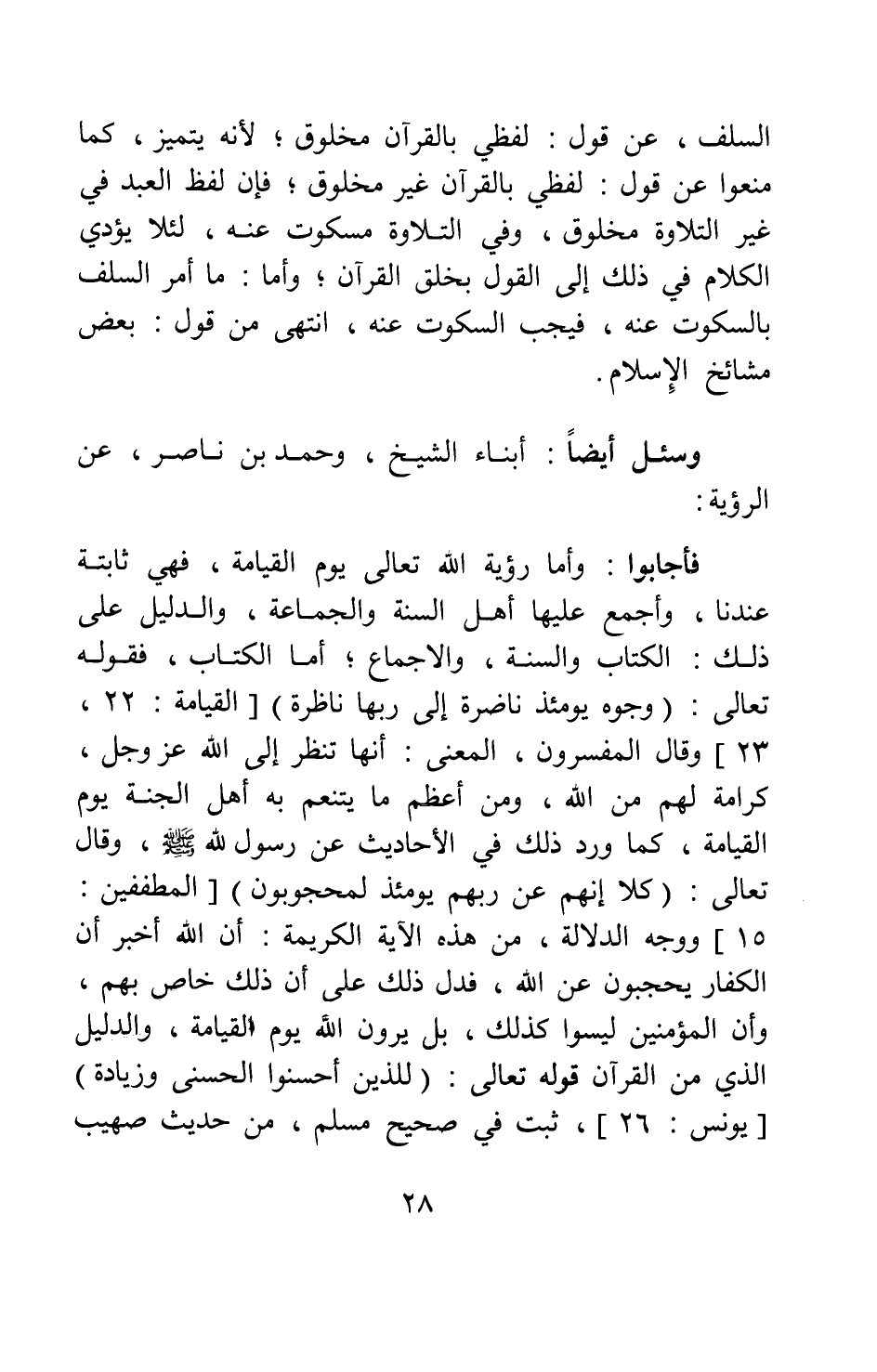 [جواب أبناء الشيخ ابن عبد الوهاب عن رؤية الله تعالى ورؤية النبي ربه في الدنيا]