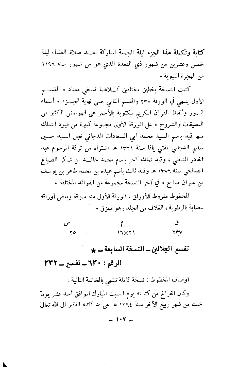 تفسير الجلالين- النسخة السابعة-* الرقم: 630 - تفسير- 332